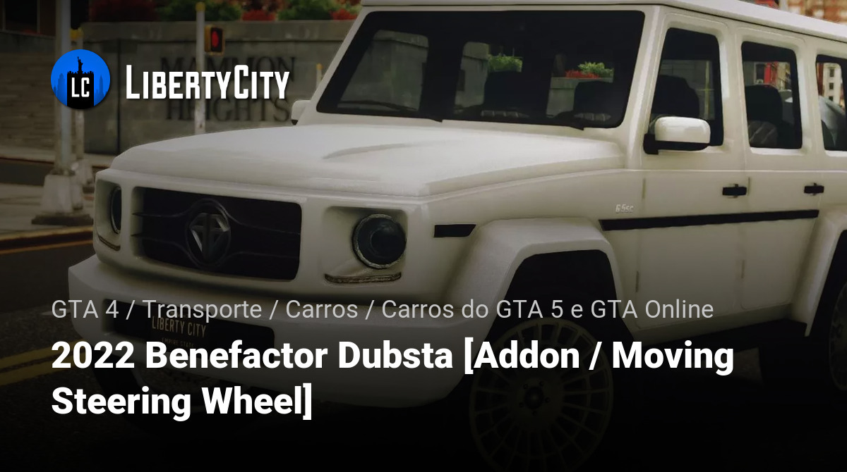 O Benefactor Dubsta 2022 é um SUV moderno do jogo Grand Theft Auto 5, inspirado em carros luxuosos e potentes do mundo real. Ele se destaca por sua aparência imponente, interior espaçoso e excelente capacidade off-road em qualquer tipo de estrada.
