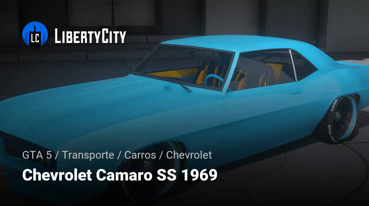 1969 Chevy SS Camaro Modernizado para GTA 5. A parte frontal do carro apresenta um capô potente com uma linha saliente, um design agressivo da grade do radiador e faróis redondos reconhecíveis. Nas versões modernas, os elementos de LED são mais fre...