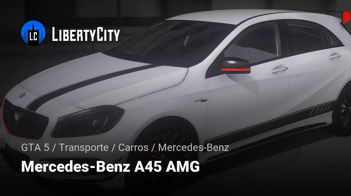 Mercedes-Benz A45 AMG para GTA 5. O Mercedes-Benz A 45 AMG é um hatchback esportivo compacto que representa uma combinação agressiva de potência, estilo e inovação. Externamente, o A 45 AMG apresenta um design esportivo e emocional, combinando atl...