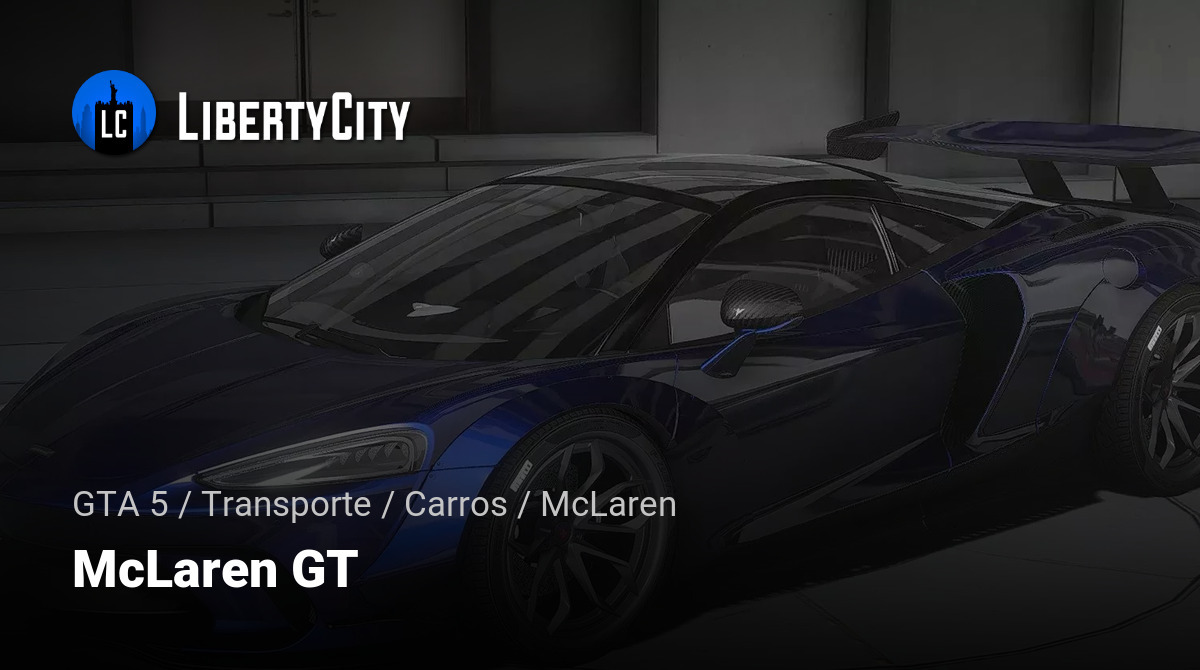 2020 McLaren GT para GTA 5. O carro tem uma forma baixa e aerodinâmica que lhe confere uma aparência esportiva. Possui características distintas da McLaren, como asas e portas "asa de gaivota" posicionadas no alto. A frente do carro inclui um pára...