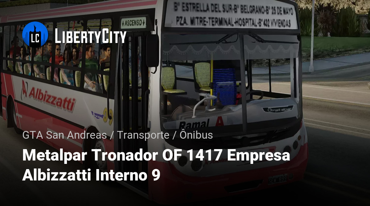 Metalpar Tronador OF 1417 Empresa Albizzatti Interno 9 — это городской автобус, используемый компанией Albizzatti для перевозки пассажиров на городских маршрутах. Он отличается вместимостью, надёжностью и удобством для ежедневных поездок.