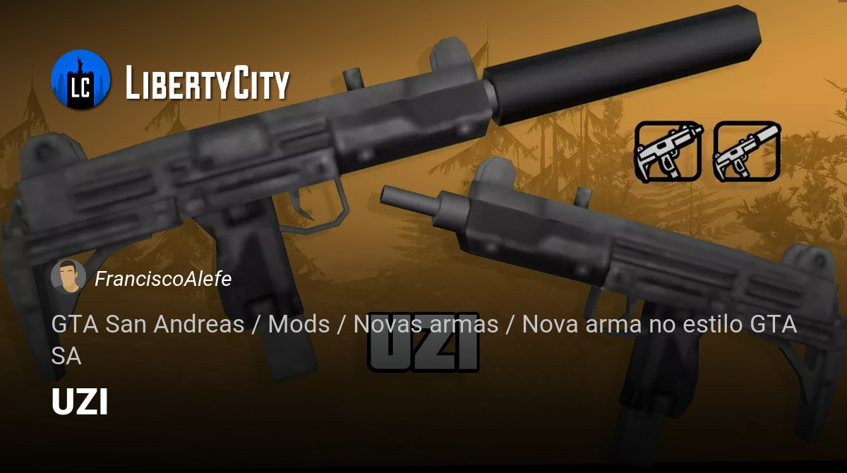 Novo micro Uzi para GTA San Andreas, não sei o nome, as imagens do "modelo" do Uzi foram retiradas da internet, boa qualidade, no jogo fica simplesmente incrível, tamanho das texturas — 512 por 512, se encaixa bem na mão do CJ. Instalação: adicion...