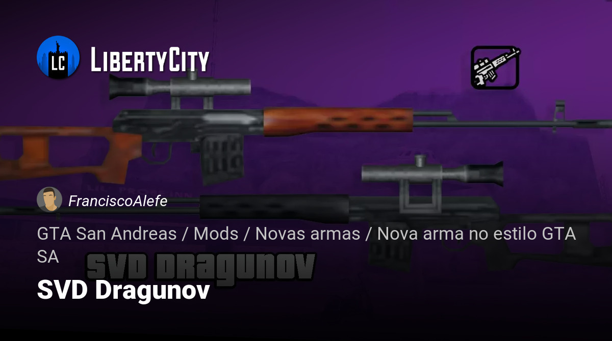Como prometido, eu fiz a SVD — nosso rifle de precisão nacional desde os tempos da URSS. -Texturas normais, não borradas -Novo ícone no estilo SA -Ícone para o HUD do GTA IV -Se encaixa bem nas mãos -Nova mira de qualidade -Configurações realistas -...