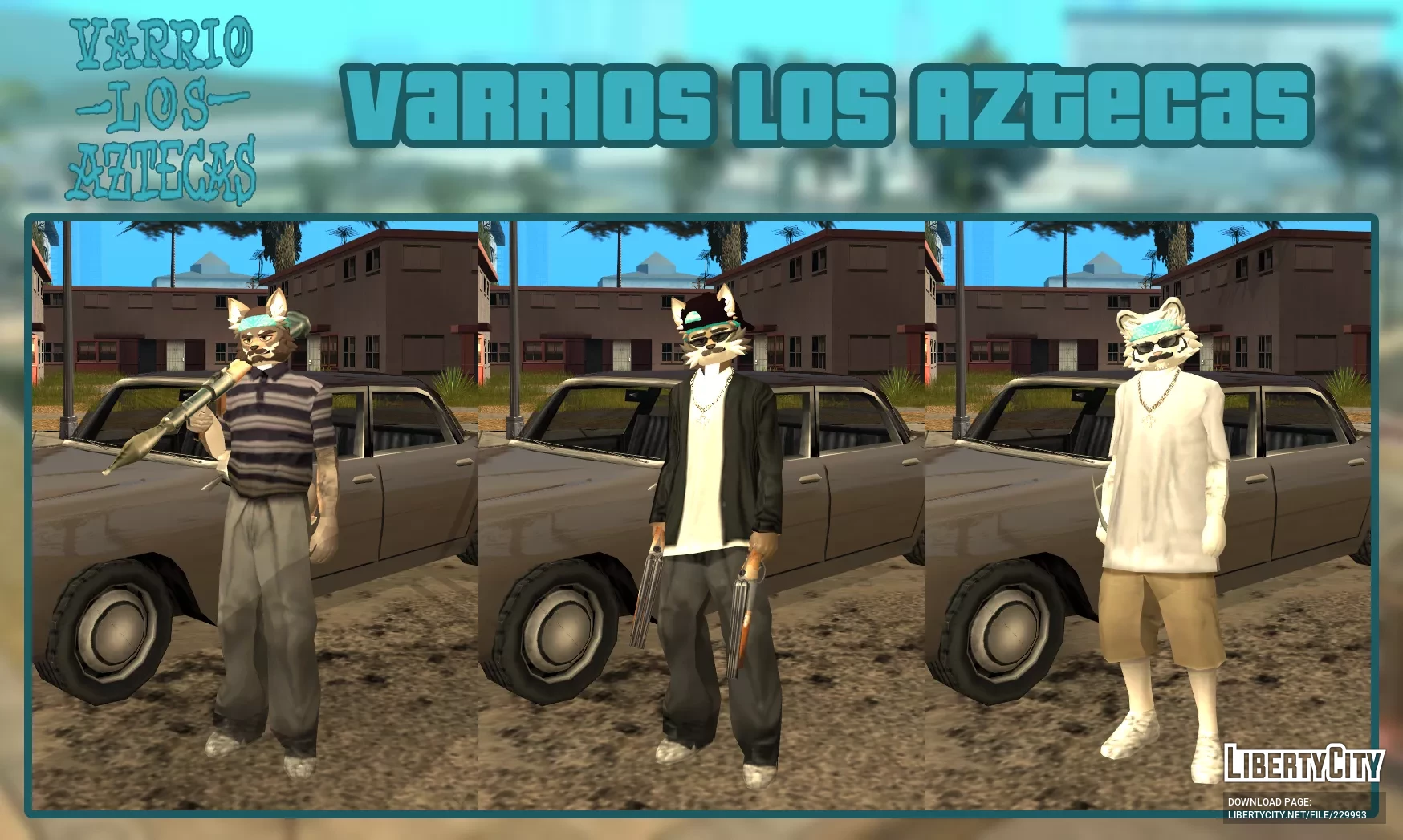 Este mod substitui as cabeças de todos os bandidos Grove, Vagos, Aztec e Ballas por personagens furry estilizados.