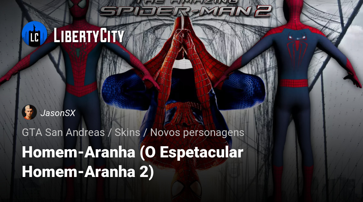 Voe por San Andreas com estilo usando o traje de O Espetacular Homem-Aranha 2, recriado fielmente do filme de 2014.