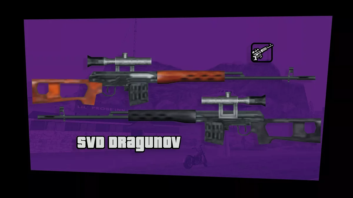 Como prometido, eu fiz a SVD — nosso rifle de precisão nacional desde os tempos da URSS. -Texturas normais, não borradas -Novo ícone no estilo SA -Ícone para o HUD do GTA IV -Se encaixa bem nas mãos -Nova mira de qualidade -Configurações realistas -...